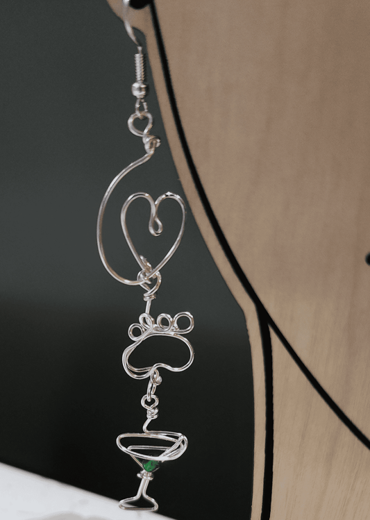 Paw Print and Martini Drop Earrings, Unique Handmade Jewelry