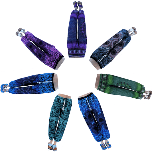 Harem Pants For Women. Harem Pant With Pattern & Big Pocket– Blue, Green, Pink, Red –Elastic Waist M