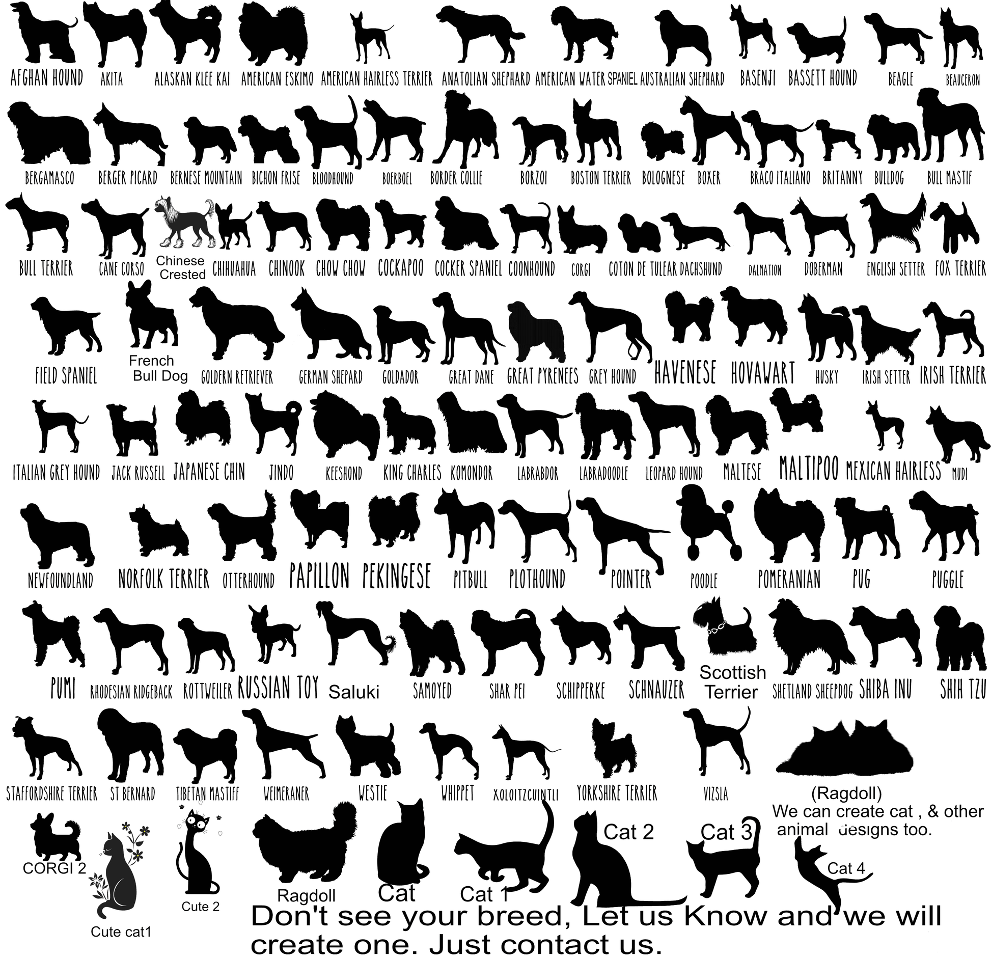 - Custom pet design — choose from dog or cat breeds or request a custom illustration