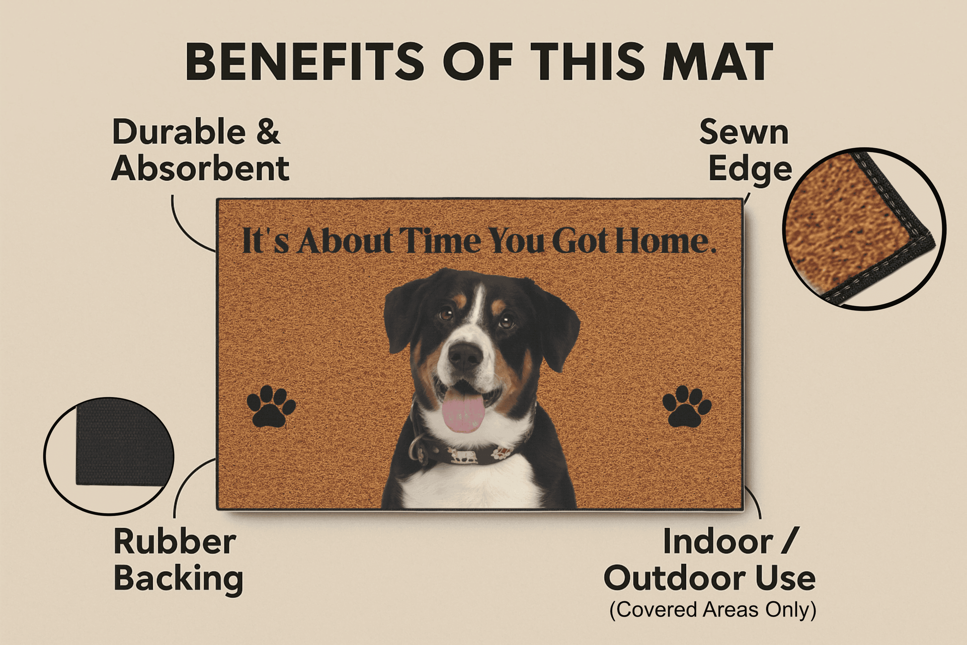 This custom pet doormat is designed using your dog or cat’s photo along with the funny phrase you choose. Each mat is professionally printed on a durable textured polyester surface with a non-slip rubber backing—perfect for front doors, covered porches, hallways, mudrooms, and indoor entryways.