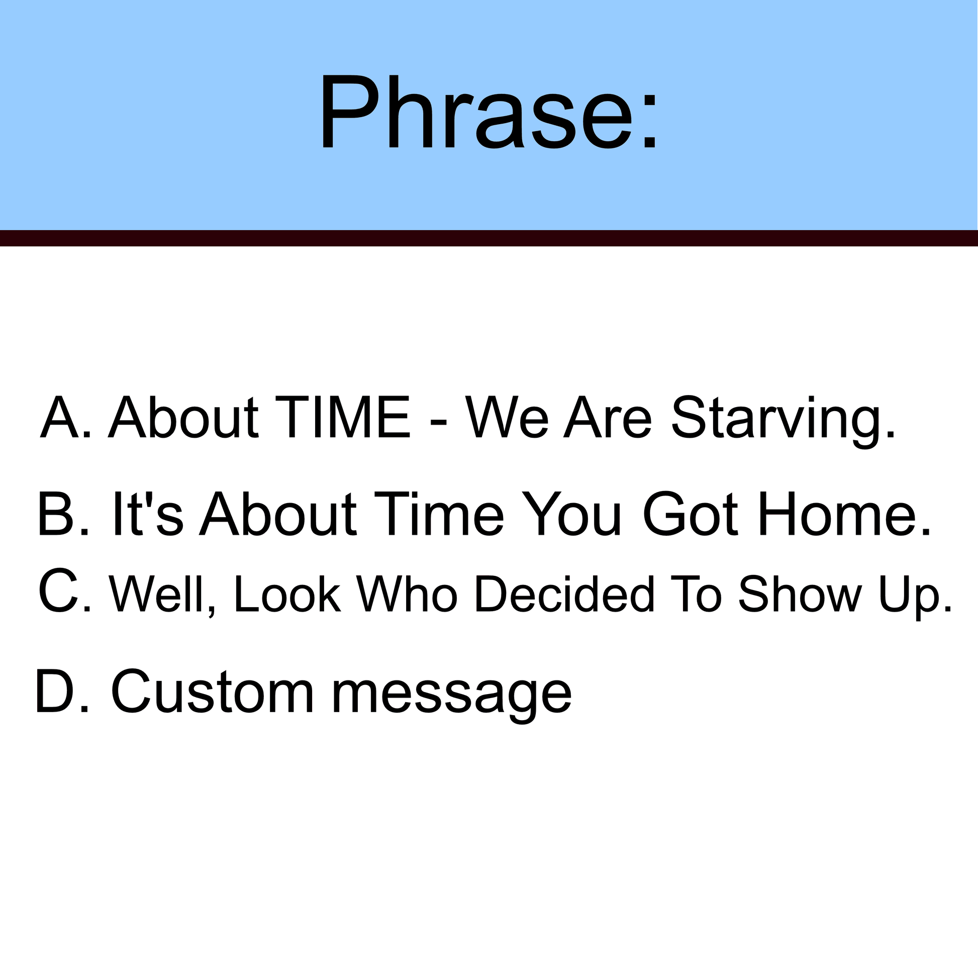 Letter of the phrase you want (A, B, C… see phrase chart)