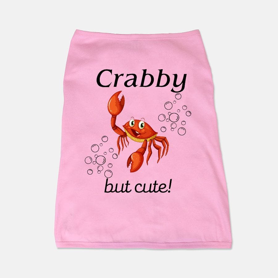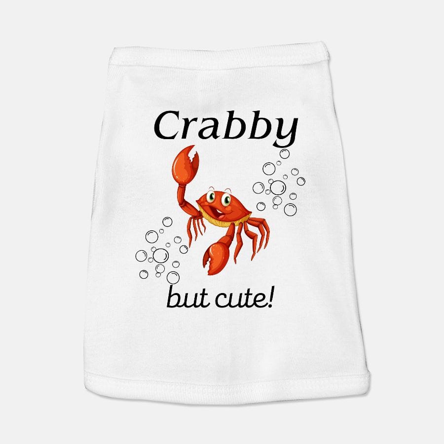 Are you looking for a cute and personalized shirt for your furry friend? Check out our custom dog & Cat shirt with a crab design in the center and a cute bubble floating around it! The shirt is available in white, pink, grey, and reads "Crabby but cute."