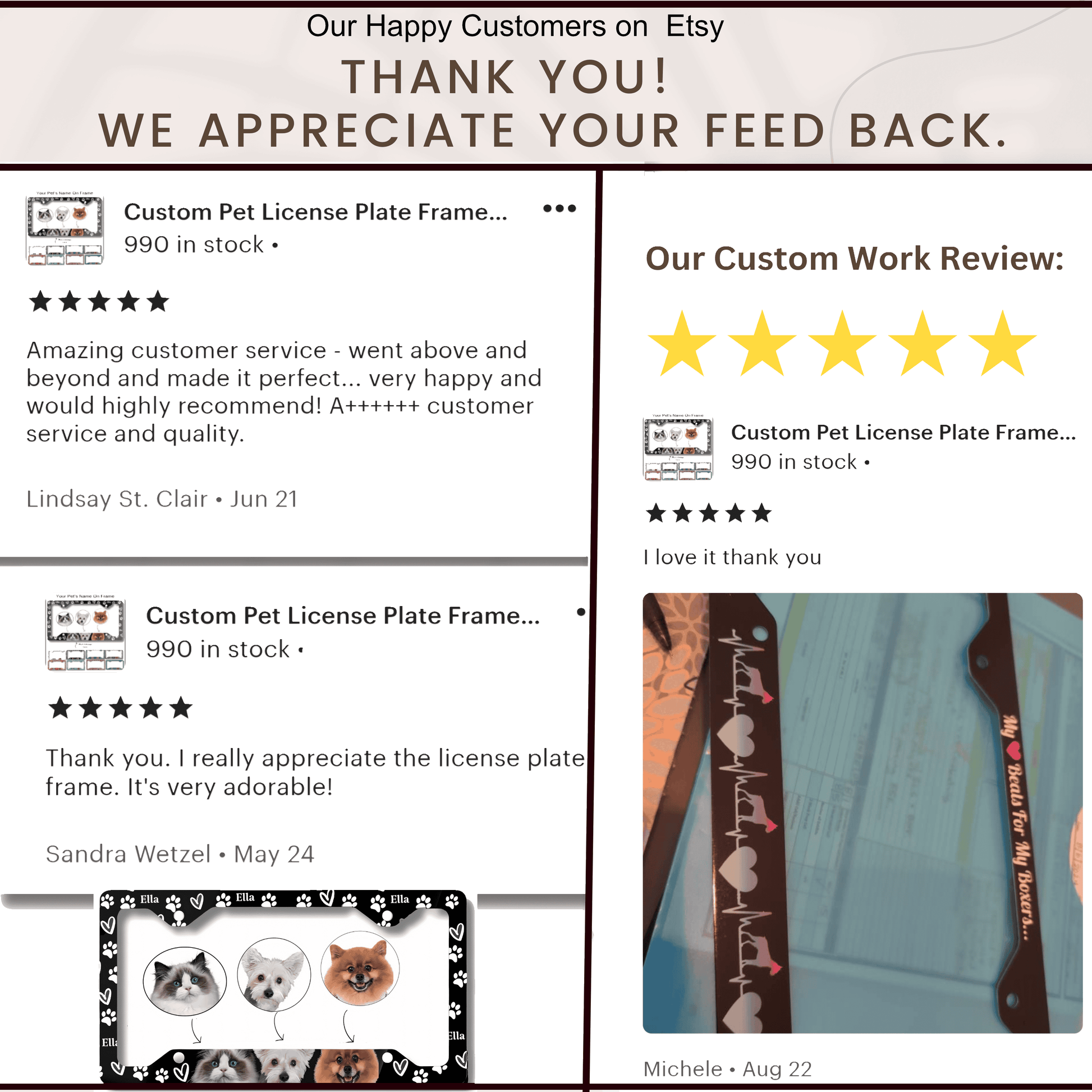 Each frame can be fully customized with your pet's image, allowing you to stand out on the road and easily identify your vehicle in any parking lot.